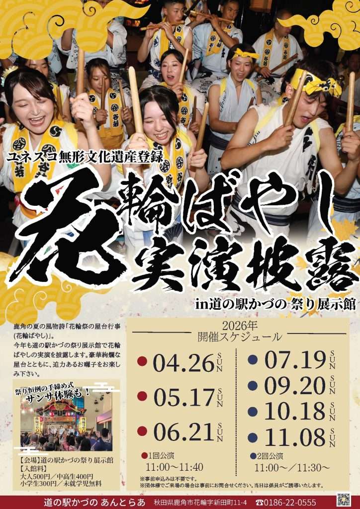 令和8年「道の駅かづの」花輪ばやし実演披露スケジュールについて